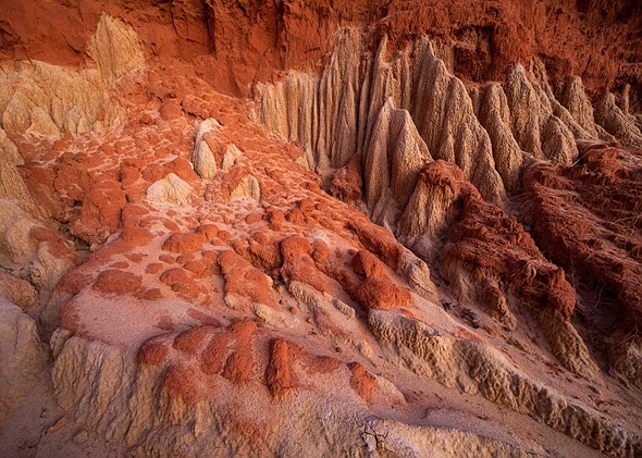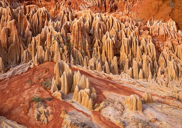 The Red Tsingy area is predominantly red-colored, but the different hues and textures make it diverse and elaborate enough for landscape photography. Three natural pigments are found here in the soil: ochre, vermilion and magenta. Malagasies use them for face paints and natural dyes.