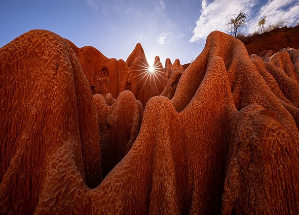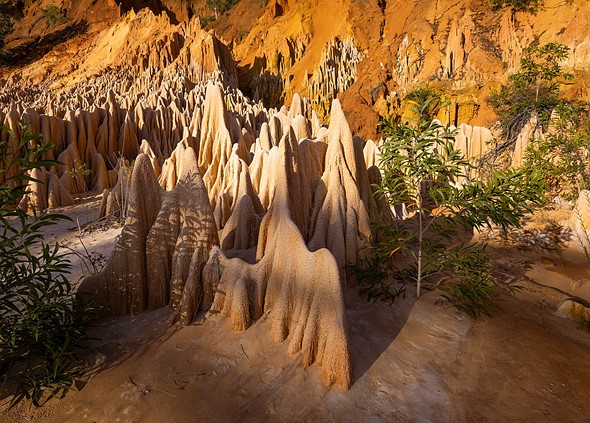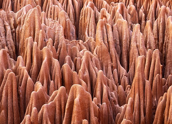Shooting the Red Tsingy is, surprisingly, quite challenging. In general, I find that the more compositional elements an area has, the harder it is to find the really good images. Since the Tsingy are usually very closely packed, some of them can get in the way and ruin an otherwise good composition. The fact that the Tsingy are all the same color makes it difficult to create separation between the photographic elements. The photographer thus needs to actively search for compositions with different colored elements, which happens, for example, when the ground is different in color from the structures.