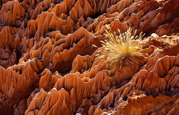 Not karstic, not hard or sharp and extremely gentle to the point that it’s forbidden to touch them for fear of harming the delicate structures, The Red Tsingy are basically dried-up pinnacles composed of laterite and iron oxide-rich soil, which are the result of erosion, caused by the massive deforestation practiced throughout Madagascar. As always, deforestation eliminates the plants’ ability to hold the soil in place, which leaves it vulnerable to being swept by rain and wind. The remaining shapes are made smooth by years of being sanded down by winds, which leaves truly wonderful, almost organic-looking shapes. New structures keep being formed and unveiled every year.