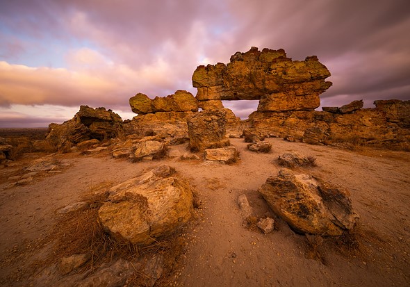 Apart from the arch, there are eroded rock formations nearby, surrounded by fields where termites build huge mounds, which can serve as nice foregrounds.