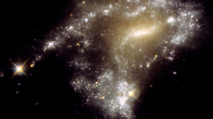 When galaxies collide, they don’t necessarily destroy the stars within them. As NASA explains, contrary to popular belief, such a galactic “rough-and-tumble” actually triggers the generation of new stars and — presumably — planets.
