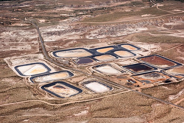 Fracking wastewater evaporation pools above the White River in the Uinta Basin in northeast Utah. Photo: Russel Albert Daniels |