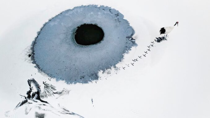 Best Aerial Photo of the Year Features a Red-Crowned Crane on Ice