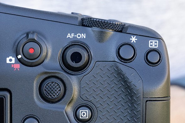 Canon’s smart controller, a two-function controller that originally appeared on the 1D X III and again on the R3, doubles as the AF-On button and simultaneously acts as a trackpad for your thumb. It can be used to move the AF point around the viewfinder while pressing it initiates autofocus.
