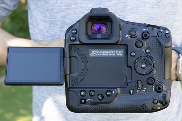 Fun fact: the R1 includes a little mystery window in the lower left corner on the back of the camera. A Canon representative told us it’s reserved for a future feature but doesn’t do anything at the moment. Feel free to speculate in the comments.