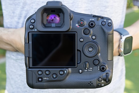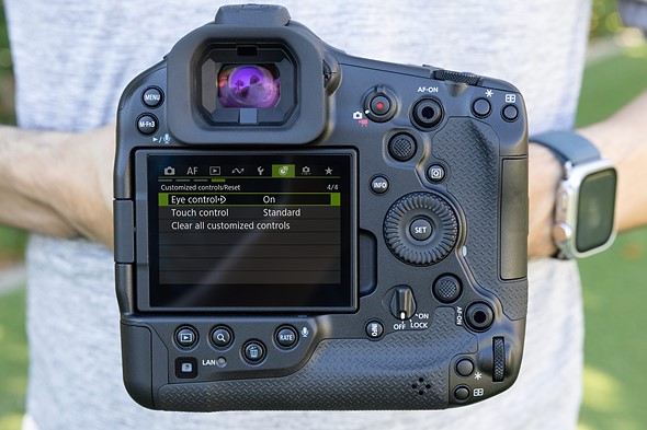 Canon’s smart controller, a two-function controller that originally appeared on the 1D X III and again on the R3, doubles as the AF-On button and simultaneously acts as a trackpad for your thumb. It can be used to move the AF point around the viewfinder while pressing it initiates autofocus.