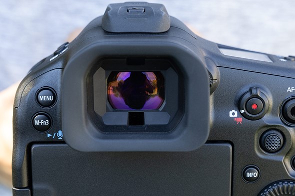Above the EVF is Canon’s multi-function hotshoe, which can provide communication and power for accessories like a microphone adapter.