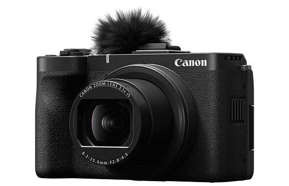The Canon PowerShot V1 has a 16-50mm equivalent lens. Despite its vlogging focus it can capture Raw stills, too. Rendering: Canon |