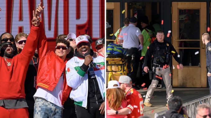 While I photograph the Kansas City Chiefs’ home games during the season, I don’t go along if they make the playoffs or Super Bowl. But that doesn’t mean I’m finished doing assignments involving them. This year, for instance, I was hired to cover their departure from Kansas City to Las Vegas, then the big downtown watch party the night of the game, and finally the victory parade and celebration that went from ecstatic to horrific.