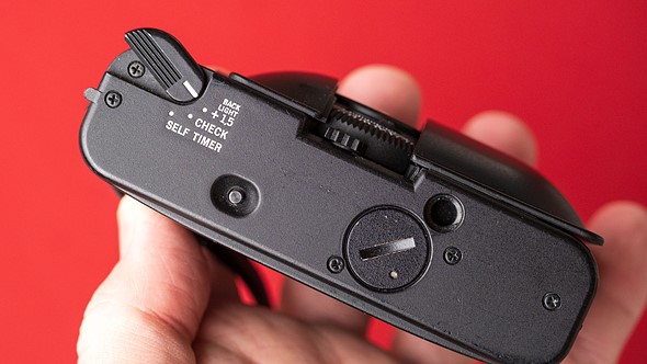 Semi-auto or not, the XA doesn’t leave you in the dark about its exposure decisions. A match needle display on the left of the viewfinder indicates the camera’s current shutter speed of choice. Want to override that? You have one option: a lever on the bottom, when engaged, adds +1.5EV.