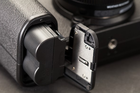 Next to the battery is the upgraded UHS-II SD card slot. While you only get the one slot, and it’s more or less in the same spot, the uprated interface will be a boon for burst shooting. With a fast SD card, Fujifilm says the X-S20 can shoot more than 1,000 JPEGs or compressed Raw files at 8 fps.