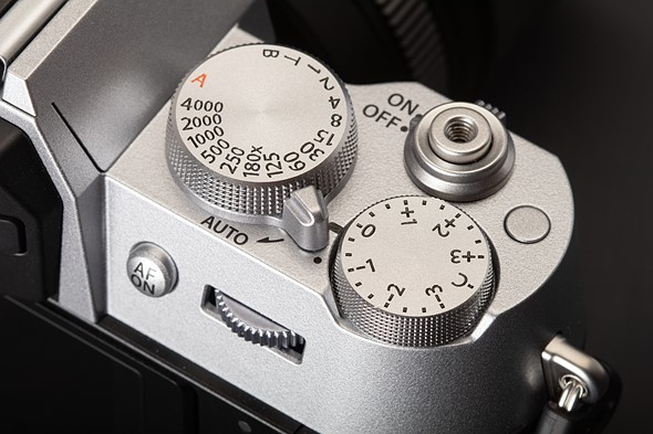 | The X-T50 fits dedicated shutter speed and exposure comp dials onto its top plate, and even finds room for a customizable button. |