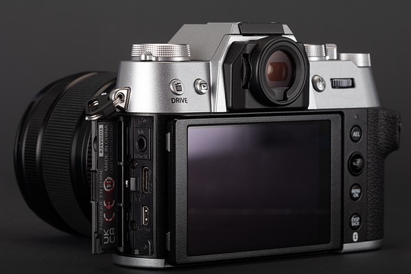| Part of the reason for the X-T50’s small viewfinder is that Fujifilm has left room for a small built-in flash. |