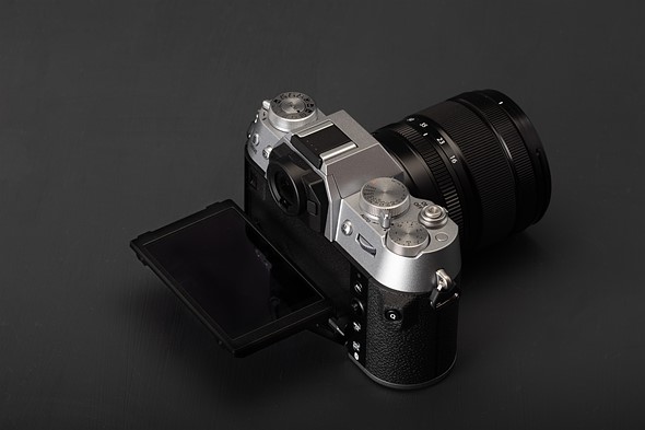 Although it maintains the same family appearance as the X-T30 II, the X-T50 is a completely new body. Rather than being essentially a rectangle with rounded corners, when viewed straight down in the plan view, the new cameras has completely curved ends and a forward-jutting extension at the top of the front grip.