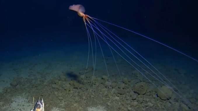 Giant Bigfin Squid Filmed Walking Around on Its 13-Foot-Long Tentacles