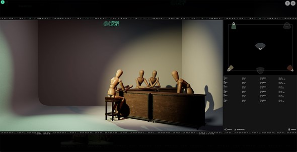 Outside of the guide, you can manually adjust multiple settings for six different lights. Users can control power, angle, penumbra, hue and saturation for each individual light or adjust those settings for groupings of lights. The set starts with a mannequin and plant, but you can also add additional props like a couch, plants, and an old-school TV. You can also change the backdrop from a basic studio setting to real-world options like a restaurant, ski resort, train station and more.