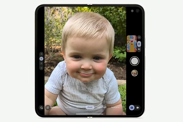 The Pixel 9 Pro Fold takes advantage of its rear screen to enable some useful photography features. It allows users to use the devices rear camera for shooting selfies, resulting in better image quality, and its Dual Display feature lets both photographer and subject see what a photo will look like.