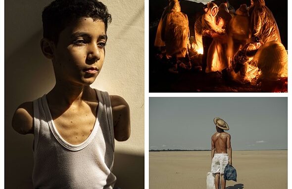 Two other finalists were selected as runners-up: John Moore for Night Crossing, depicting Chinese migrants warming themselves at the US-Mexico border at night. Musuk Nolte was also recognized for Droughts in the Amazon, capturing a young man bringing food to his mother in the drought-ridden village of Manacapuru.