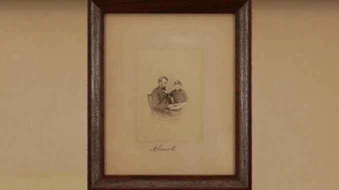 A rare, signed image of Abraham Lincoln and his son Tad — the only time the former president was ever photographed with a family member — is up for sale.