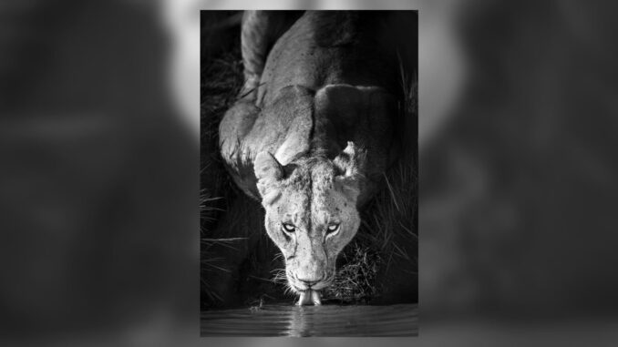 Some photographs happen in an instant. Others take years to arrive. For more than a decade, I carried a very specific picture in my mind: a lion at complete ease, drinking from still water, everything calm and in balance. I knew how it should look, the light, the posture, the mood, but in the field, the moment always slipped away.