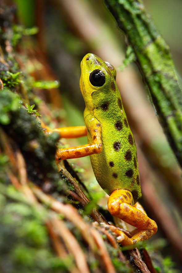 | A strawberry poison dart frog in the jungles of Panama. How well did I do balancing the compositional masses and minding subject direction? |