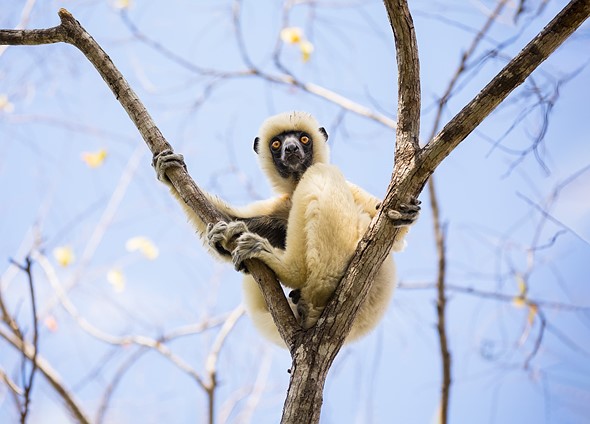 A Decken’s Sifaka perched on a Y-shaped branch. Canon 5D4, Sigma 150-600mm |
