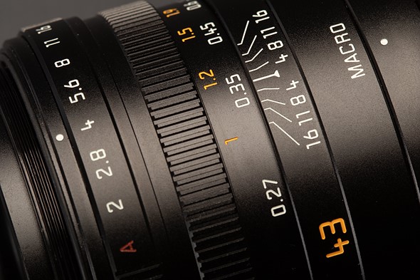 | Rotate the ring nearest the camera (on the right of this image) and a new distance scale slides forward from the barrel of the lens, showing the close focus range of the lens. |