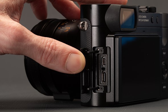 On the side of the camera is a small rubber door, behind which you’ll find a Micro HDMI port and a USB-C socket. Video footage can be output over the HDMI port but precisely what resolution and codec is used depends on whether you’re shooting L-Log, HLG or standard DR footage and whether you’re simultaneously recording internally.