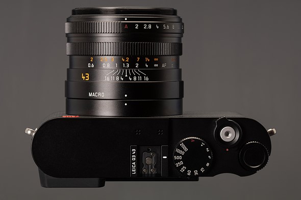 The Q3 43’s body is essentially identical to that of the Q3, which itself was a relatively gentle refresh of the design of the Q2. The principle difference being that the 43 version comes in a grey leatherette finish, and has the numbers 43 both on its lens and milled into its hotshoe.