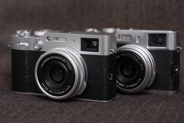 The X100 (Rear) has long ago been superseded but its most recent descendent, the X100 VI (Front) is still very much in demand. Photo: Richard Butler |