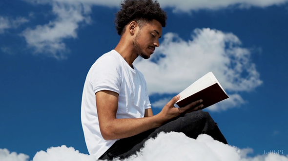 Prompt: “A young man at his 20s is sitting on a piece of cloud in the sky, reading a book.” AI video credit: OpenAI |