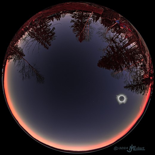 JMLobert paired a Nikon Z6 with a Sigma 8mm F3.5 EX DG Circular Fisheye and pulled this eclipse image among the trees.