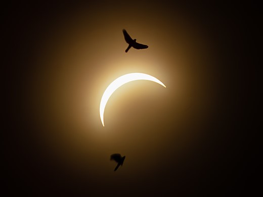 “To be completely honest, I was just shooting bracketed sets on a tripod at regular intervals hoping like most people to get some decent shots of the eclipse. I did not see the birds until after the capture; it was just a very happy accident. I exclaimed ‘what are the odds of that?’ … I kind of feel like I used up all my luck for the year!”