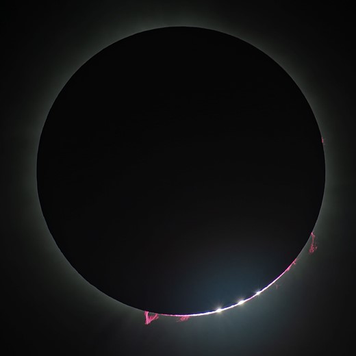 “In order to catch the solar prominences, I needed to remove the filter before the totality and keep the lens unfiltered for a very short time period after totality.”