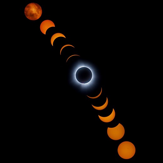A composite image created from 13 images captures the multiple stages of the eclipse.