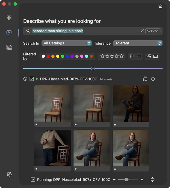 As with most AI-based tools, Peakto Search will get you closer to finding the images you want, but may not hit the target right away. A search for “bearded man sitting in a chair,” for example, brought up images that included just that, but also photos from the same shoot that included just the chair, and the man standing next to the chair.