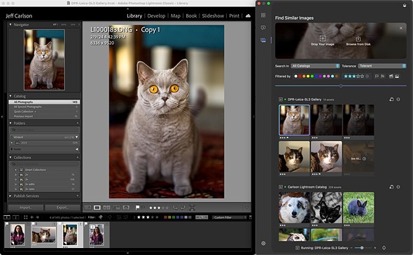 | In this case, the cat photo in Lightroom Classic is the basis for locating similar photos. |