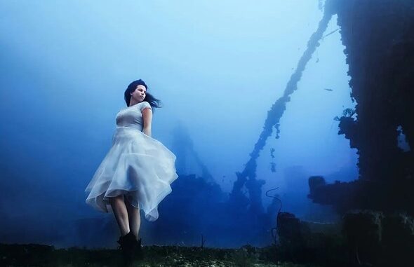 A photographer has gone to new lengths (or, in this case, depths) to create a unique photograph. Canadian photographer Steve Haining and model Ciara Antoski recently set a Guinness World Record for the deepest underwater model photoshoot. The shoot took place at 49.8 meters (163.4 feet) on a shipwreck near Boca Raton, Florida, producing otherworldly images.