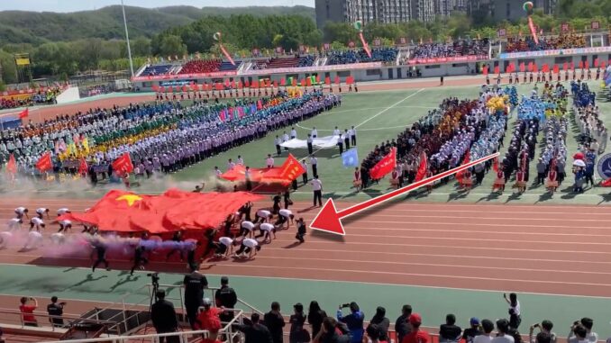 A photographer got his timing and positioning all wrong at a sports meeting in China and ended up interfering with the show.