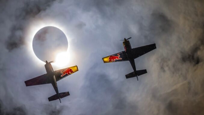 Two pilots and a pair of photographers teamed up to create what they are describing as a “once-in-a-lifetime” set of photos featuring two planes passing through the last solar eclipse in North America for 20 years.