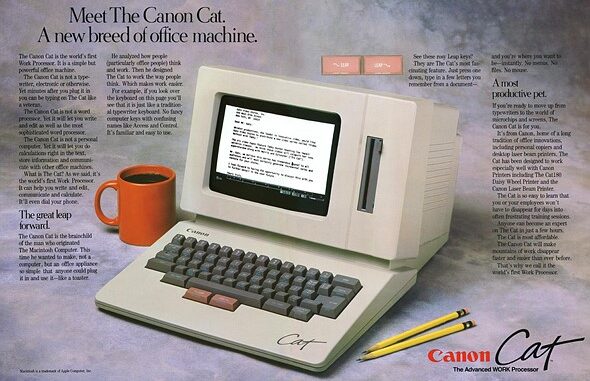That computer is called the Canon Cat, and its creation was led by Jef Raskin. It debuted in 1987, according to The A Register, and Canon sold it not as a word processor, electronic typewriter or even personal computer. Instead, the company called it a “Work Processor”: a machine to “help you write and edit, communicate and calculate.”