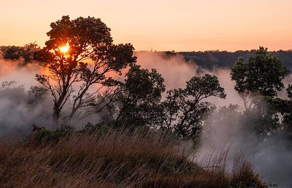 Steam rises over the rim of the Kilauea Volcano crater on the Big Island of Hawaii at sunrise. I rose early to catch the morning light, but hadn’t anticipated the steam rising from the volcano below. Lucky me. Samsung NX1 | NX 16-50mm F2-2.8 S | F8 | 1/640 sec | ISO 100 |
