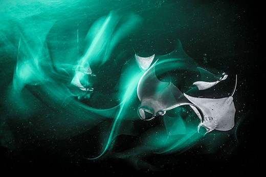 Artist statement: Born during the great mobula aggregations of spring, juvenile Munk’s devil rays remain in the Sea of Cortez long after their parents have left, using the shallow bays of Espiritu Santo Island as a nursery.