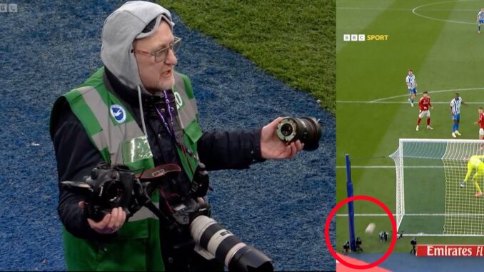 A photographer had his $5,800 (£4,500) camera and lens obliterated by an errant ball during a soccer game in England this weekend.