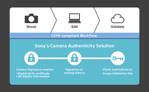 Sony’s solution also helps protect the authenticity of content by including an Image Validation Site, which verifies the image even after edits have been made by C2PA-compliant editing software. This service confirms the authenticity of the photo was taken by a specific camera and that the object of the photo is 3D. This service will initially be offered to select news media agencies, expanding to other agencies at a later date.