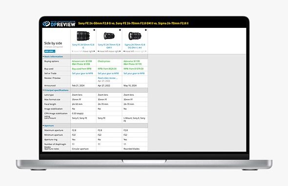 As a starting point, Haisch connected with DPReview staffer Mykim Dang to discuss his options. That conversation quickly led him to our Lens Feature Search and Lens Comparison Tool where he was able to quickly whittle the list of potential lenses down to just three.