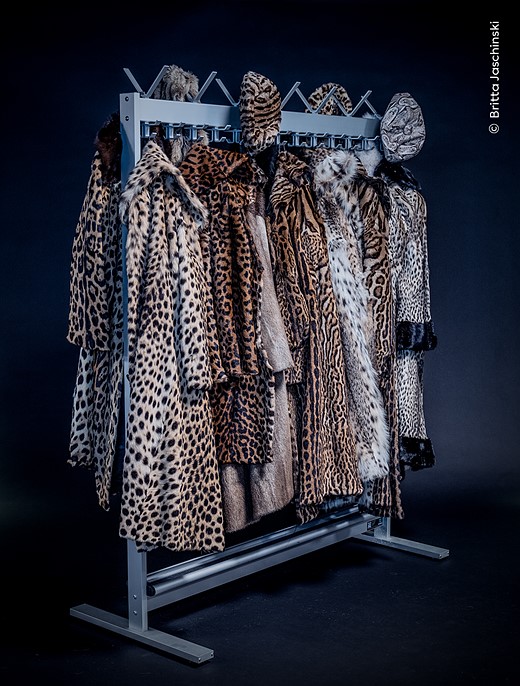 These coats made from the skins of a snow leopard, jaguar, ocelot and other big cats were confiscated by European customs officers and held for forensic tests before being used for educational events.