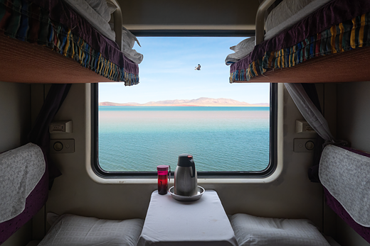 At representative locations along the way, the idea of showing China’s contemporary scenery through the train windows. Outside the car window, there are not only the shocking Gobi, lakes, snow-capped mountains, but also contemporary man-made landscapes such as high-voltage power towers, sand-proof walls, plateau highways, etc.